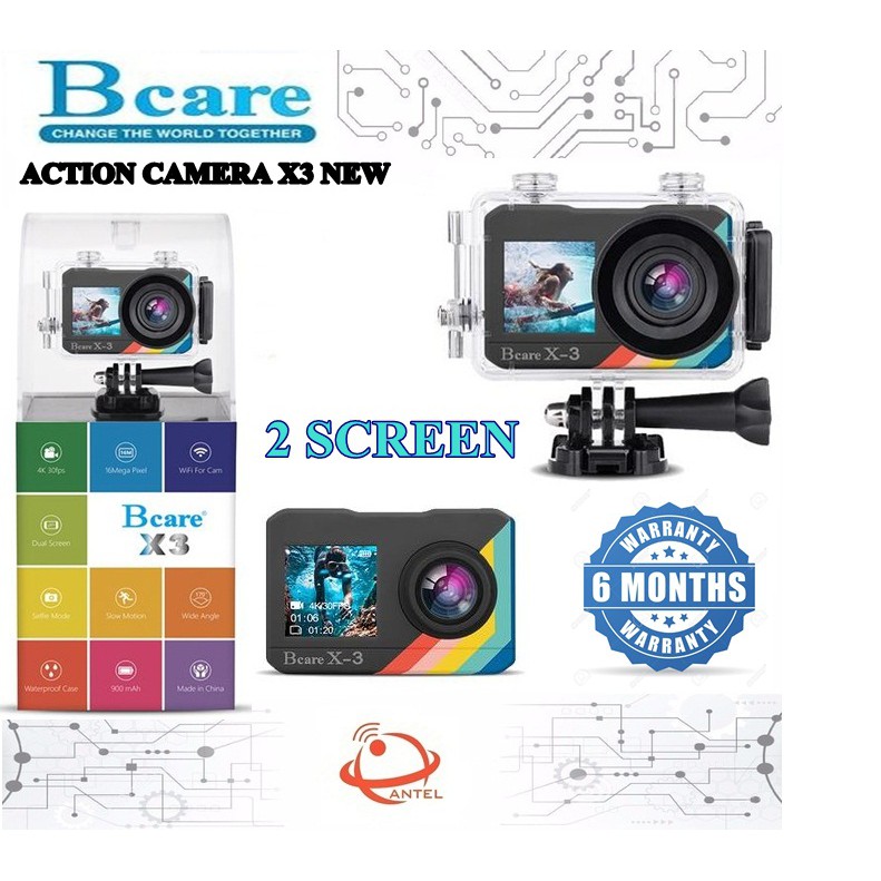 Jual Bcare Bcam X 3 Dualscreen Action Camera 16 Mp Wifi Sony Sensor 4k Black Antel Shop Cameras For Video Conference